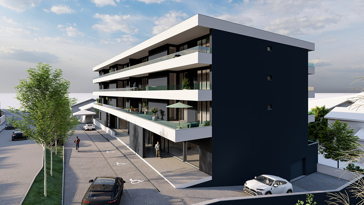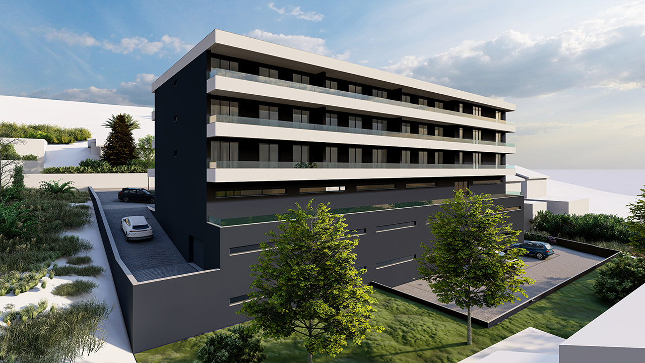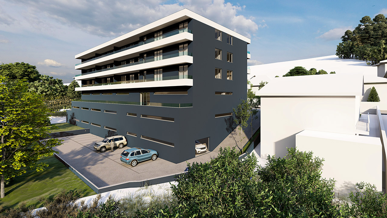 Projecto de habitação colectiva com 6 pisos é composto por sub cave, cave, rés do chão, e 3 andares.