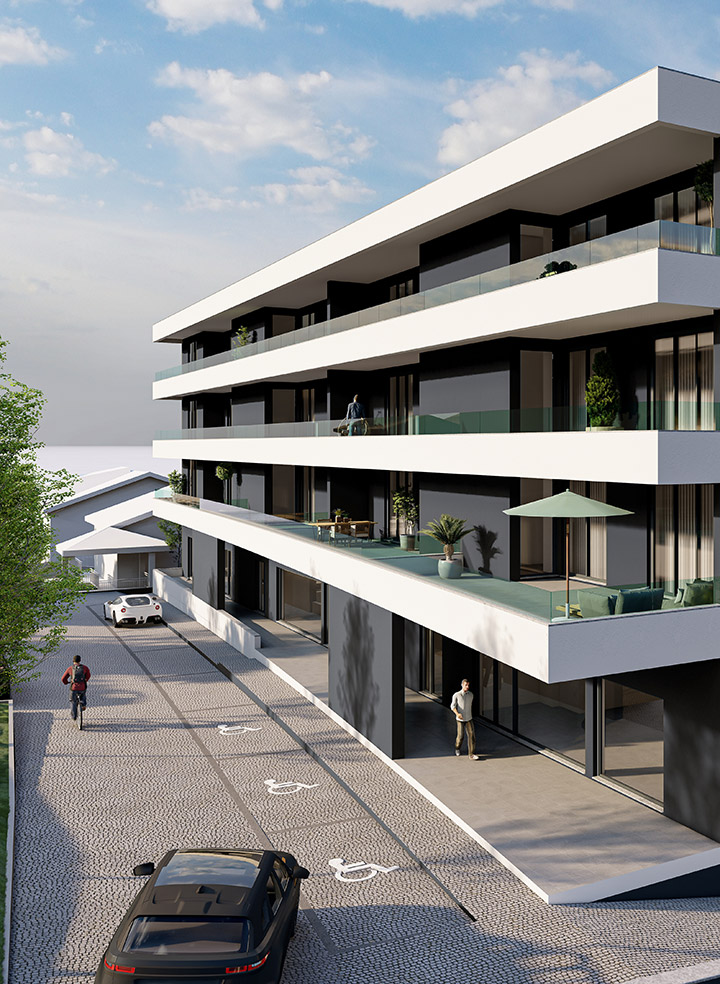 Habitações desde T2 com terraço a T3 com terraço e áreas cobertas desde 108m2 a 200m2.